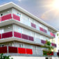 Balkon Sicht- und Windschutz aus dreierlei rotem Acrylglas