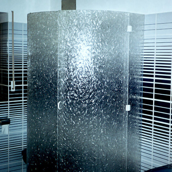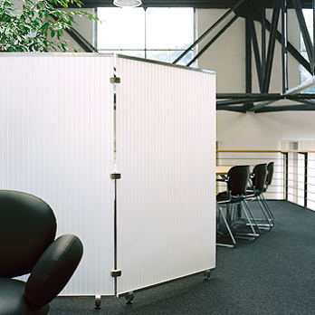 Fahrbare und faltbare Trenn- und Sichtschutzwand